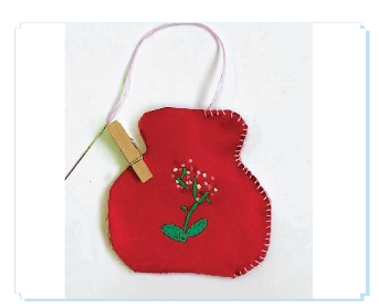 4.图4—40:用木夹固定布片,用锁针缝合福袋。