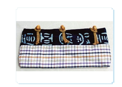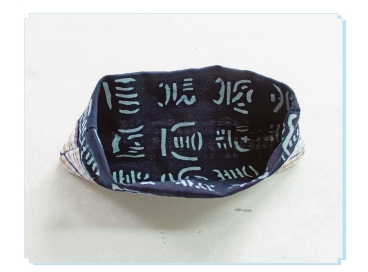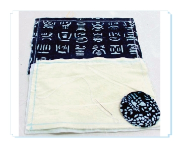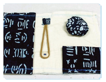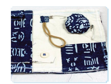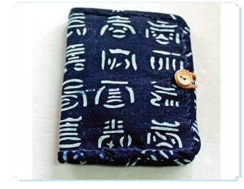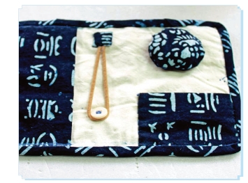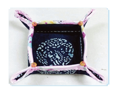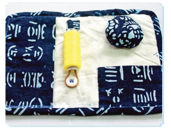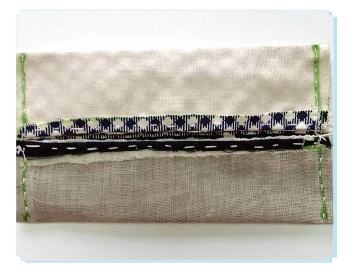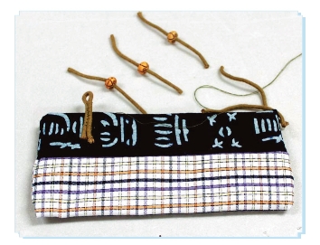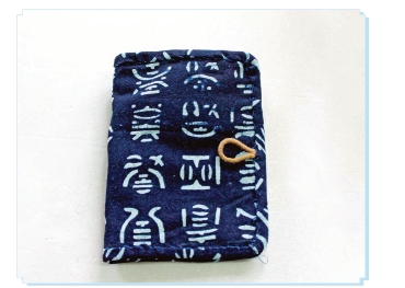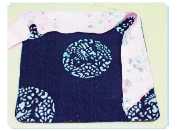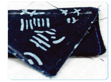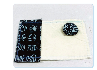 9.图5—28:剪大小为9厘米×12厘米的扎染布对折做成另外一个杂物包,反面缝制一条短边。