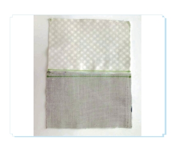 2.图5—11:将两块布料正面对正面,采用回针拼接缝合并烫上粘合衬。