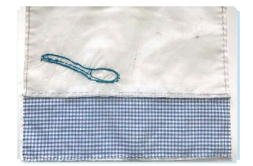 3.图6—56:将前片白布与花布正面相贴,用缝针缝合。