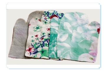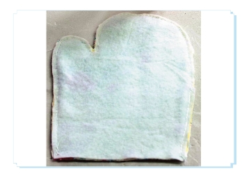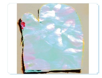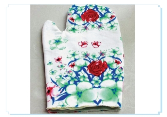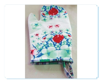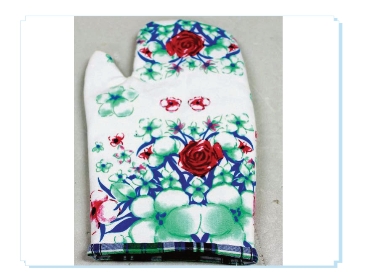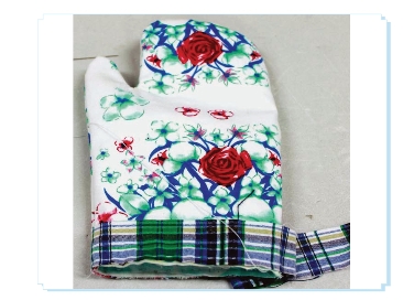 新鲜出炉的食物虽然好吃,可是用手直接去拿热的碗碟会被烫伤。一副隔热手套不但可以隔离高温保护我们的双手,而且还可以起到防滑作用。图6—4为月季花微波炉手套。