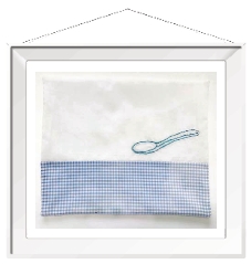 2.图6—55:前片的白色涤棉布上绣上调羹的图案。