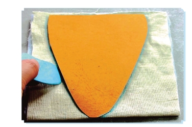 3.图6—34:黏合铺棉:用布用双面胶将铺棉黏合在表布背面。