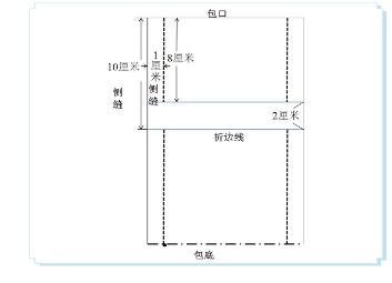 5.图6—21:折至10厘米处缝合一圈,再向上2厘米处画一条线,用缝针缝合一圈。