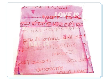 目前市场上机器加工的布艺制品泛滥成灾,它们千篇一律,味同嚼蜡,没有半点温情可言。而手工的魅力恰恰就在于它浓浓的人情味,在这个快餐时代,能够一针一线地将时间缝进一件作品中,不仅别有滋味,而且还能培养积极愉悦的心情。当手边有一块精美的布料时,可以用它来做一些漂亮而别致的手袋、手套、剪刀套或者其他小饰物。根据自己喜欢的造型、色彩,随心裁剪、任意组合,那真是赏心悦目,情趣盎然。