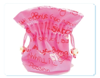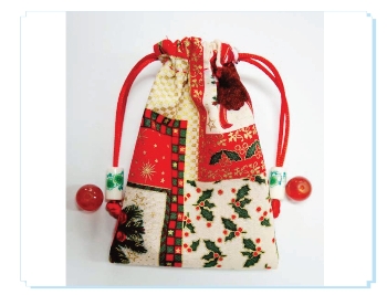 图6—2为束口连底小包。根据个人需求确定束口袋的大小尺寸,里面可以放置自己喜爱的小礼品,或是装个手机、相机充电器之类的东西。如果有兴趣还可绣上名字,并内置一包香囊送给朋友,收到的人一定会惊喜万分。