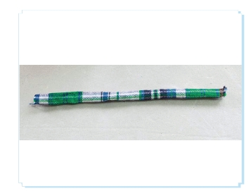 7.图6—15:准备两根15厘米的红绳,用穿绳器交叉穿绳。