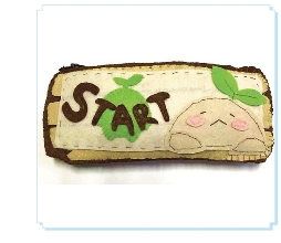 1.图6—68:根据交通卡的尺寸,裁剪两片11厘米×7厘米的不织布片,再剪两块神仙鱼装饰布片和水泡布片若干。