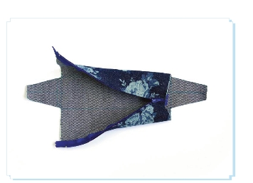 5.图6—46:将前片和后片重叠,对齐尖部,用滚条沿边缝合。