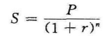 在此公式中,S为贴现发行价,P为票面额,r为年收益率,n为期限。将已知数值代入公式,r=5.41%。这年收益率是采用复利公式计算得出的。如果采用单利公式计算,那年收益率应该大于5.41%,但不能从上述单利贴现发行公式中推导得出,因为式中无年收益率,所以得另外给出计算单利的年收益率公式: