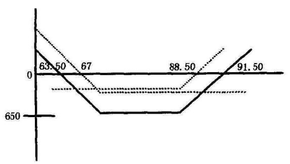 例12:某人分别买入同品种、同期限的一份看涨期权和一份看跌期权。看涨期权合约协定价85元,期权费3.50元,看跌期权合约协定价70元,期权费3元。当时,股价为77.5元,投资者总成本为650元。从图3-10中可见,虚线图标分别为两个期权合约单独图形。现投资者采用买入两份异价合约对敲,实线图标呈平托型,显示了投资者的两个异价合约盈亏平衡点分别是63.50元和91.50元,即股价必须上涨或下跌超过14元以上,投资者方可真正获利。如股价始终在70元~85元区间徘徊,两合约都将被迫放弃,亏损最大值为650元。