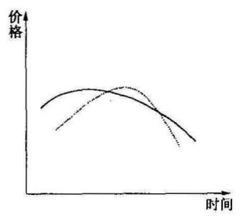 上述股价曲线与移动均线交叉方法是典型的运用移动均线判断证券市场价格走势的方法,除此之外,投资者还可以利用多重移动均线来判断证券市场价格走势。一般来说,若使用两种以上移动均线交叉法来研判大盘走势,通常是其中较短期均线由下而上穿越另一条较长期均线时,短期趋势更强些,即短期均线是主导趋势,向人们发出买入信号;反之,当其短期均线由上向下穿越另一长期均线时,长期均线即为强势而形成主导趋势,向人们发出卖出信号。