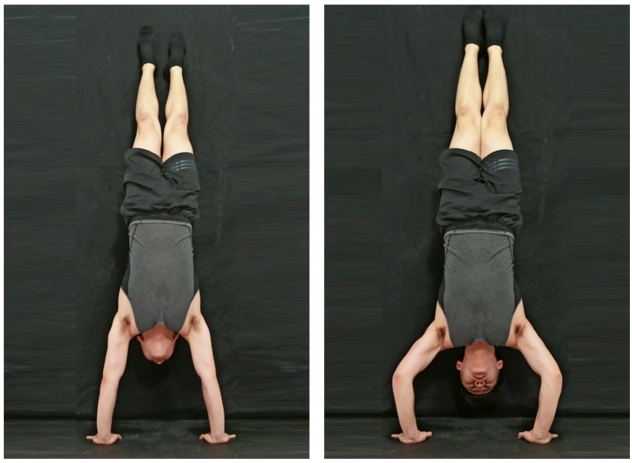 此动作有一定难度,初期可以根据自己能完成的程度调整屈臂下降的高度,头部不需要触地,然后随着锻炼难度的提高,逐步至头部触地。此动作每组动作数量和组数以能有效保持动作不变形为标准,不追求力竭,以免造成头颈部损伤。