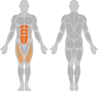 坐姿举腿中椅子是一个支撑点,其锻炼的重心在于下腹肌肉力量,并借助腹部肌肉收缩使得双腿上举及屈伸,从而达到下腹肌肉的锻炼作用(图6-3)。