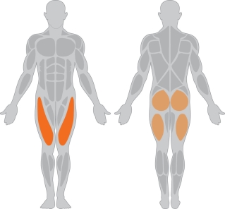 徒手箭步蹲是通过髋关节和膝关节的伸屈进行臀部肌肉锻炼的动作。箭步蹲最特殊的一点在于它是一个少见的双腿不对称的训练动作,在现实生活中,我们大部分时候双腿都是不对称的,所以这个动作对于我们有很大的帮助,同时也是一个很好的大腿训练动作。这个动作对股四头肌、臀大肌、腘绳肌都有较好的锻炼作用,又能够提高肌肉的分离度,对塑造肌肉线条有较好的效果(图7-5)。