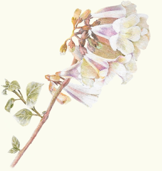 古人不太分“梧桐”“泡桐”,哪怕今天在分类学上,他们不同科也不同属,是八竿子打不着的关系。但古人一句“桐种大同小异”(见《六家诗名物疏》)也就略过去了,更不要说再细分毛泡桐(紫花泡桐)和白花泡桐。梧桐是梧桐科的植物,和我们今天的主角,玄参科的泡桐,是完全不同的树种。唯一让人感到有些困扰的是,前一阵子,正在学古琴的学妹(也是本书植物图鉴的绘制者),纠结古人所制的“桐木琴”所用的到底是梧桐木还是泡桐木。