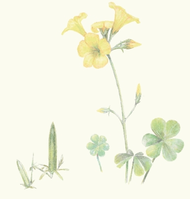 小小的酢浆草非常常见,花盆里一不小心就长出两根来,总被当作野草毫不留情地就被铲除了,过一段时间不看,却又长出更多的来。知道它的名字却是在很久之后,以前家里阳台上也种着一盆红花酢浆草,妈妈叫她夜合梅,因为到了晚上,花朵和叶子就会闭合起来,到第二天日出时再重新展开,甚是有趣。