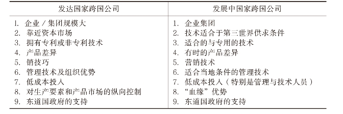 资料来源:拉奥,《新跨国公司第三世界企业的发展》,1983;载于刘春阳:《中国企业对外直接投资…动向与策略分析》,中山大学出版社2009年版。