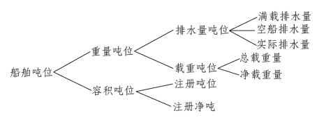 船舶吨位(Vessel Tonnage)是计量船舶大小和载重的单位。船舶有如图2-1所示的几种吨位。