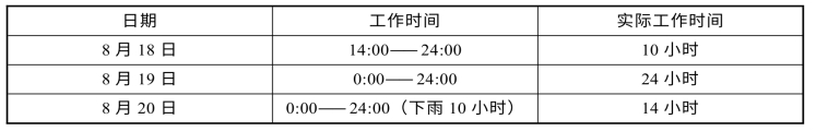 2.外轮在天津新港每一晴天工作日装卸袋装花生米的标准为1 000 M/T。现有一艘登记吨位为20 000的轮船,按晴天工作日标准装运花生米7 200 M/T出口。具体装运情况如下: