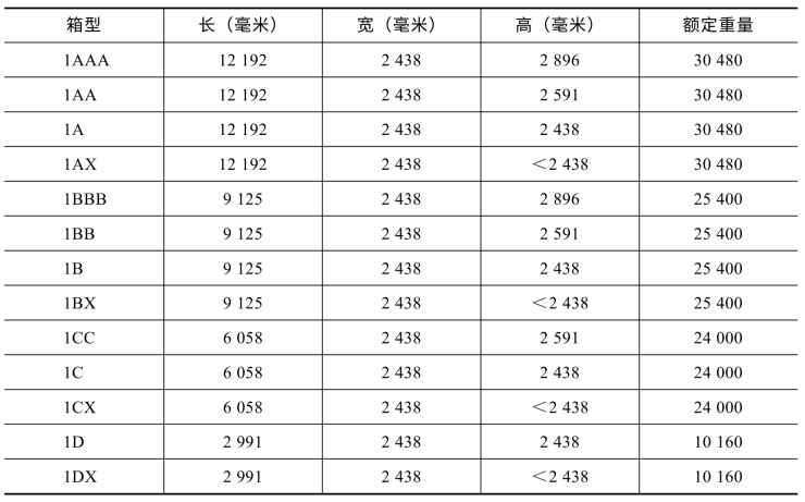 我国集装箱运输业务中常用的集装箱规格如下表所示。