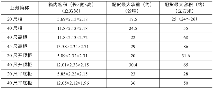 表5-2 我国集装箱运输业务中常用的集装箱规格