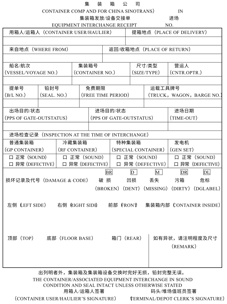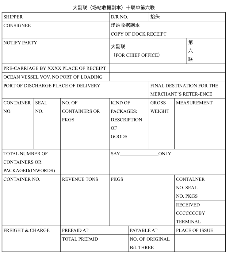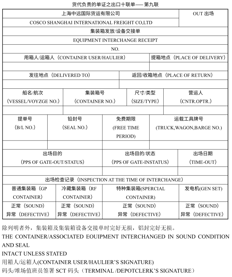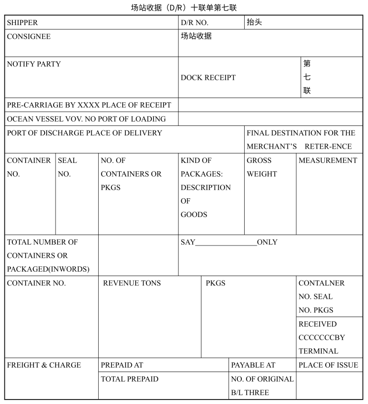 5.集装箱码头堆场在验收货箱后,即在( )上签字,并将签署的该单证交还给货运代理人或发货人。