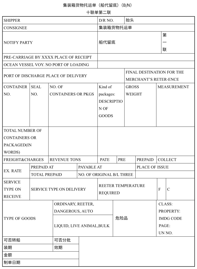 2.( )是承运人委托集装箱装卸,货运站或内陆中转站在收到集装箱货物后签发的收据,是集装箱运输专用出口单据。