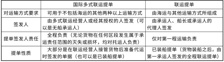 国际多式联运提单与联运提单的区别具体如表9-2所示。