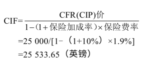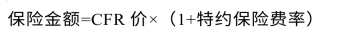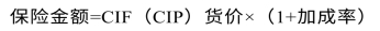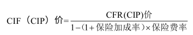如果出口商原先报的是CFR或CPT价格,而进口方要求卖方改报CIF或CIP价格,或者合同中规定采用CFR或CPT价格,进口商却要求出口商代为办理运输保险,这种情况下,无法直接算出保险金额,需要先把它们换算成CIF或CIP价格后再加成计算保险金额,其计算公式为: