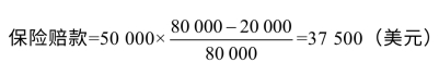 例如,出口意大利一批丝绸货物,保额为5万美元,投保一切险,在运输途中遭遇暴风雨,货物受损,目的地该批货物的完好价值为8万美元,受损后货物降价出售得2万美元,保险赔款应为: