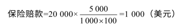 例如,出口大豆1 000包,每包100千克,投保海运一切险,保额为2万美元,在目的港发现短少5 000千克,则赔款金额应该为: