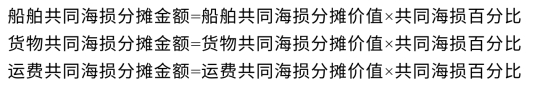 然后根据共同海损百分比算出各方的分摊金额,即: