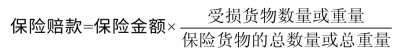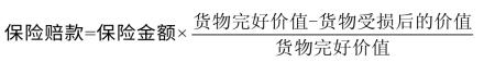 当货物的质量发生损失时,货物的价值就会随之减少,则保险人需要先计算出货物受损的价值占货物完好价值的比例,再以此为基础计算保险赔款。计算公式为:
