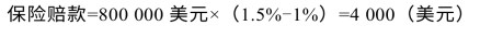 例如,出口一批粮食,总共1 000吨,投保一切险,保险金额为80万美元,保险合同中规定短量免赔率为1%,在目的地卸货时发现货物总共短量15吨。