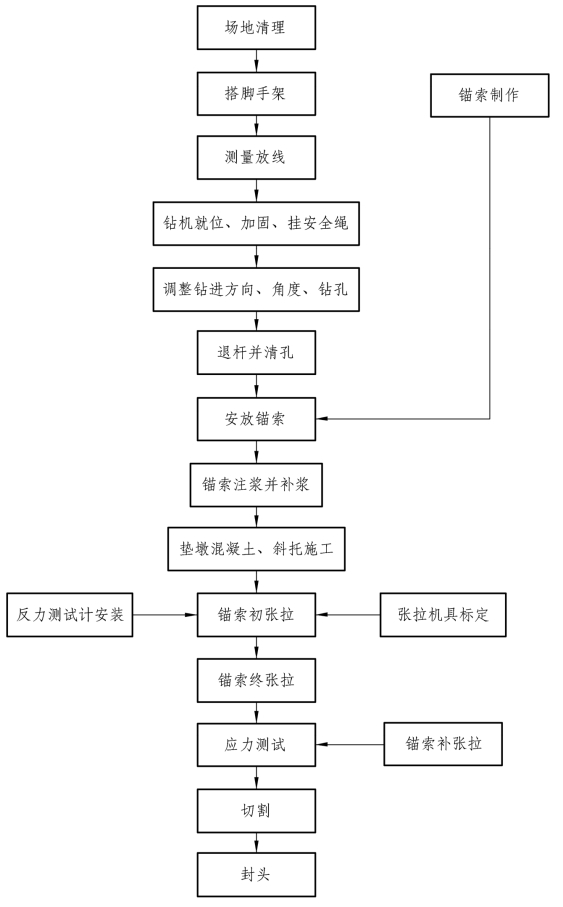 ⑧锚孔检验。锚孔成孔结束后,须经现场监理工程师检验合格后,方可进行下道工序。