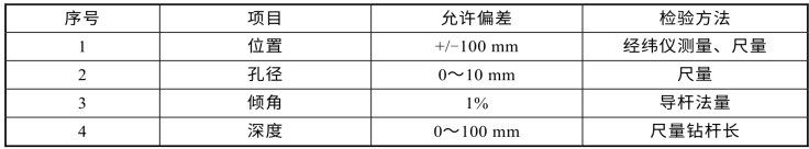 表3.2 锚索孔位置、孔径、倾角、深度允许偏差及检验标准