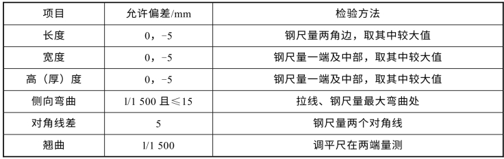 表4.2 预制构件模板安装的允许偏差及检验方法