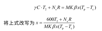 T2=T1-αt(αt+0.032n)(T1-Ta)