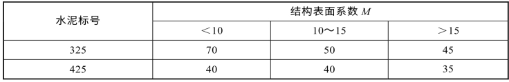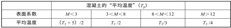 TP仅是个当量值,并非混凝土冷却过程中真正的平均温度。由于混凝土的温度是逐步降低的,其强度增长的速度也是不相同的,为了简化计算,假定混凝土处于某一恒温状态时,达到临界强度所需的时间正好等于上述冷却过程的时间。TP值可按表4.4中所列公式估算。