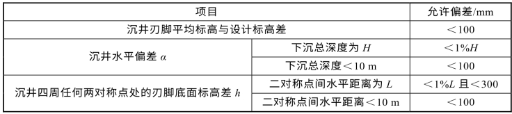 井筒下沉时,可能发生倾斜,倾斜误差校正结果有可能使井筒轴线水平位移井筒超过表6.4所示偏差值。