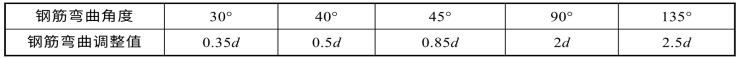 钢筋弯曲调整值 注:d为钢筋直径。