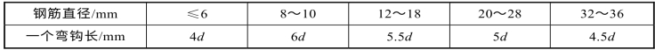 钢筋的弯钩形式有:半圆弯钩、直弯钩及斜弯钩。弯钩增加长度,其计算值为:半圆弯钩6.5d,心直弯钩3.5d,斜弯钩4.9d。
