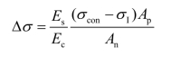 分批张拉时,由于后批张拉的作用力,使混凝土再次产生弹性压缩而导致先批预应力筋应力下降,此应力损失可按下式计算后加到先批预应力筋的张拉应力中去。