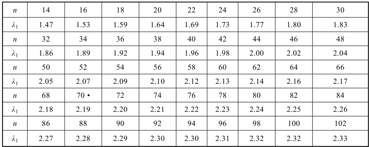 同样,将一测区测点的波幅、频率或由声时计算的声速值按由大到小的顺序排列,即X1>X2>…>Xn>Xn+1>…排在后面明显小的数据视为可疑,再将这些可疑数据中最大的一个(假定为Xn)连同其前面的数据计算出mt及st,算出异常情况的判断值(X0)。