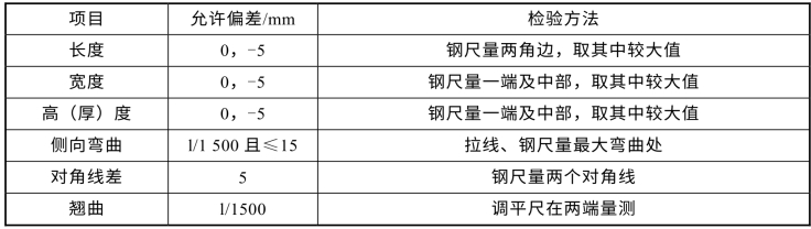 表8.1 预制构件模板安装的允许偏差及检验方法
