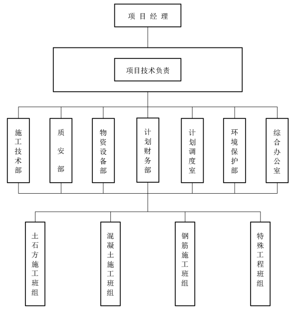 组建地质灾害治理工程项目部。以项目经理为核心,按不同职责设置专业管理机构,根据不同工序、工艺建立专业施工队(班组),管理上实行项目经理负责制,以精干、高效、高素质、多功能的管理机构组织生产。项目管理机构详见图1。