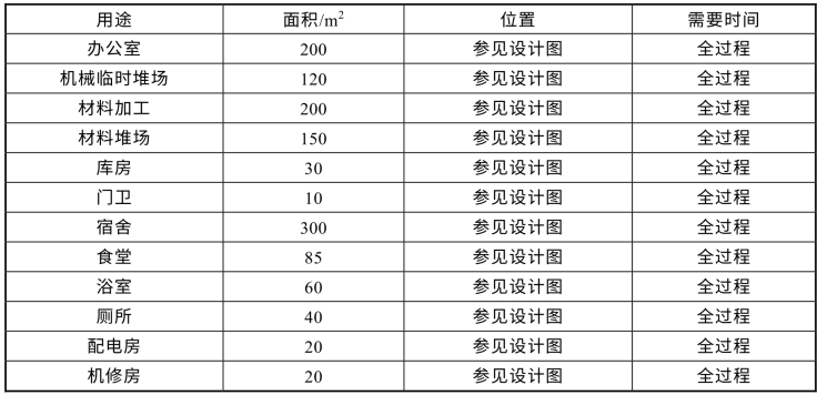 表3 施工临时用地计划表