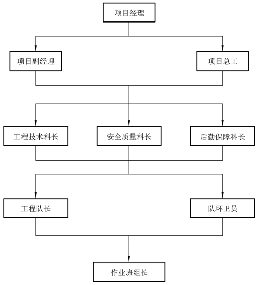 建立以项目经理为组长、分管环境保护及环卫管理的副经理和项目总工程师为副组长的环境保护及环卫管理领导小组,其管理组织机构详见图8。