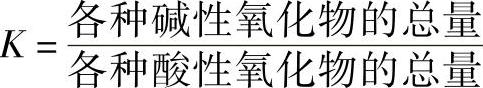 碱性氧化物多时,熔渣就表现为碱性;反之,就表现为酸性。熔渣碱性的强弱用碱度K表示。